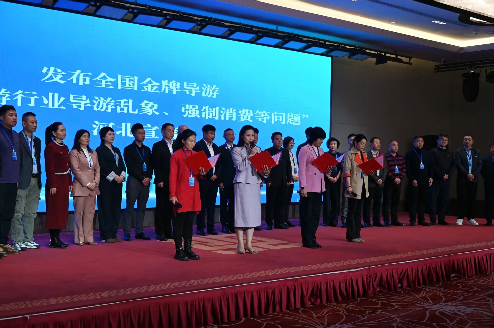 活动发布环节,百名金牌导游共同发布“抵制旅游行业导游乱象、强制消费等问题”河北宣言,以铮铮誓言坚守行业底线,守护旅游市场清朗环境;河北省旅行社和导游学习教育平台正式上线,平台汇聚权威专家课程、前沿产业资讯,全省导游可通过手机小程序实现“随时随地学”,助力导游队伍素质常态化提升;《河北省线上参团旅游“避坑”指南》正式发布,从线上咨询、合同签订到投诉举报全流程为游客提供防范指引,切实保障游客权益;“燕赵之美”导游文旅内容共创季正式启动,汇聚全国金牌导游的智慧与创意,共同创作有温度、有深度、有传播力的河北文旅内容。